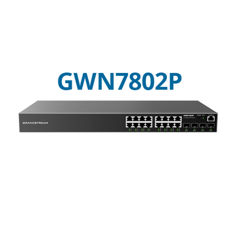 The Grandstream GWN7802P Enterprise Layer 2+ Managed PoE Network Switch is a POE switch that is part of the GWN7800 series of Layer 2+ managed network switches that allow small-to-medium enterprises to build scalable, secure, high-performance, and smart business networks that are fully manageable. The GWN7802P supports advanced VLAN for flexible and sophisticated traffic segmentation, advanced QoS for prioritization of network traffic, IGMP Snooping for network performance optimization, and comprehensive security capabilities against potential attacks. The GWN7802P is a PoE switch that provides smart dynamic PoE output to power IP phones, IP cameras, Wi-Fi access points, and other PoE endpoints. The GWN7800 series can be managed in a number of ways, including the local network controller embedded in the web user interface of the GWN7800 series switch. The series is also supported by GWN, Cloud, GWN Manager, Grandstream’s cloud and on-premise Wi-Fi management platform.